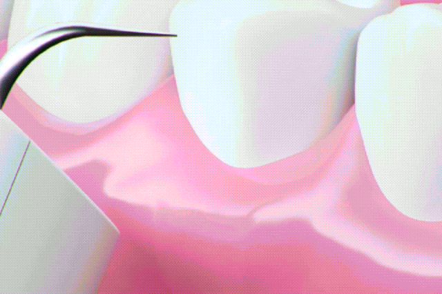 固くなってしまった歯垢や汚れを超音波で振動させ、歯から取り除きます。