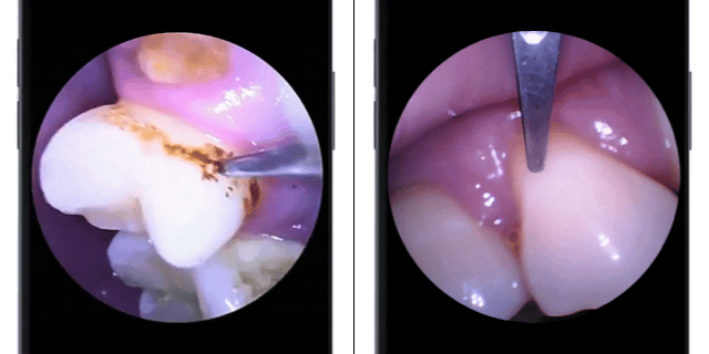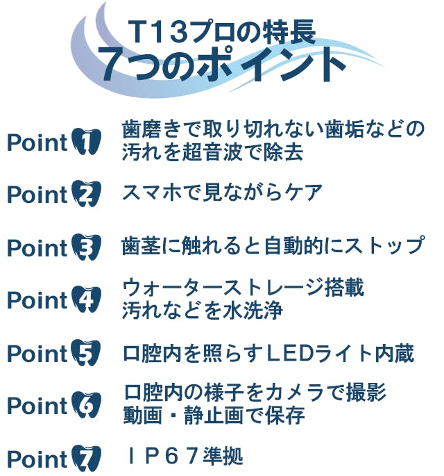 口腔内の奥は光が届きにくいため暗さを感じる場面もありますが、T13プロには4つのLEDライトが内蔵されていますので不便を感じさせません。また、口腔内を明るく照らすことで、普段は気が付かない発覚もあります。