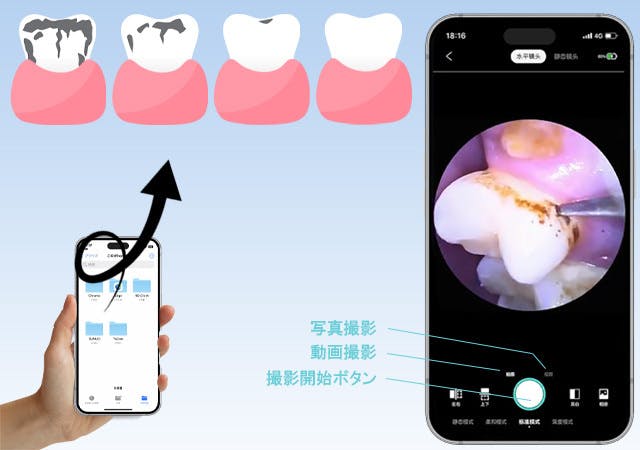 ケア中は収集して気が付かないことが、映像データが保存されていれば、見返して発見できることもあります。口内炎など病症が早期発見できたり、気になる箇所があれば、映像データ(動画と静止画)を送って専門家の見解を求めることが可能。