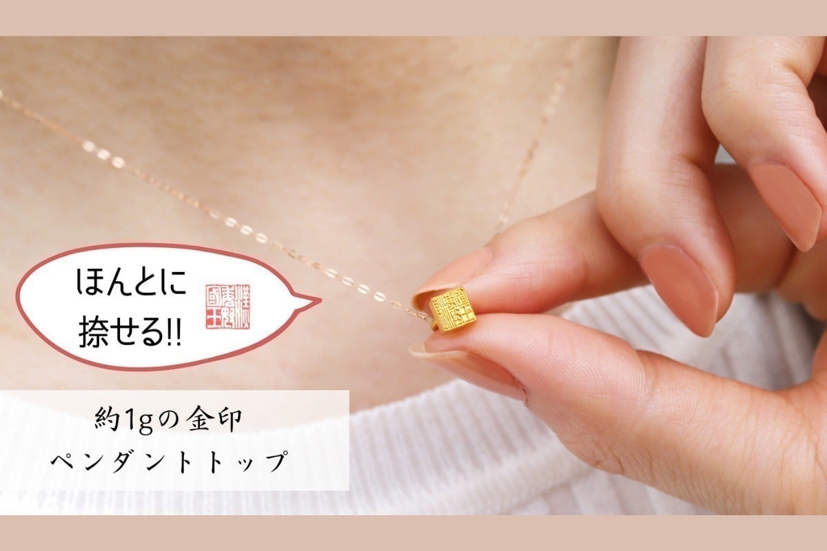 約1gの金印のペンダントトップも作っちゃいました。無垢の純金のペンダントトップは、お手持ちのチェーンに通しやすいように、大き目の小判カンが付いております。