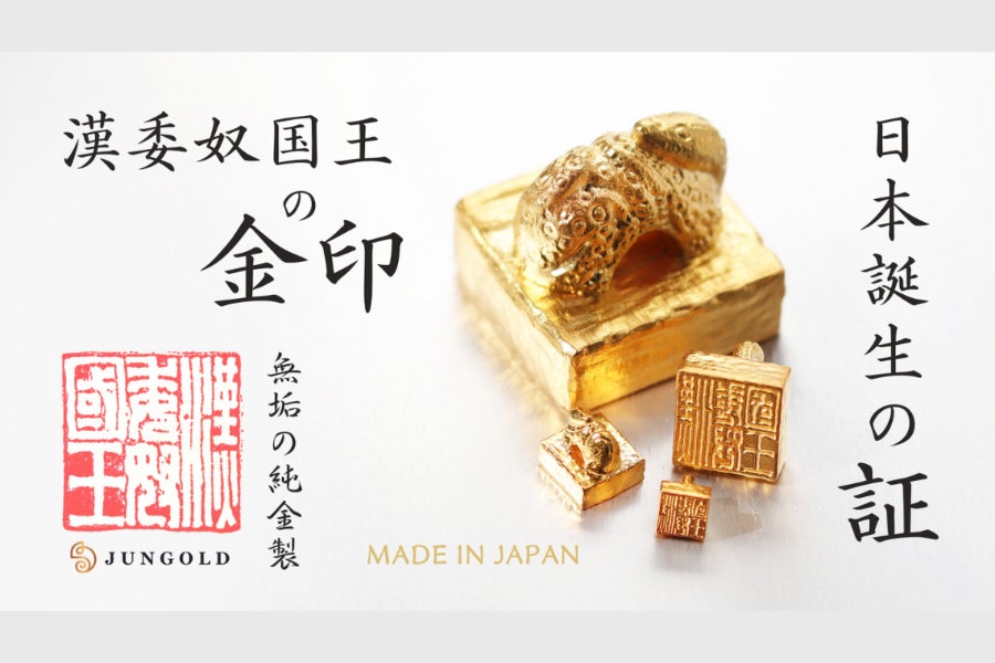 純金ブランドのJUNGOLDは、沢山の人に「金の世界」を体験してもらいたいという想いがあります。金は古代より世界中の人々の中で、憧れや権威の象徴として、装飾品や魔除けとして、愛されてきました。今回のプロジェクトは、約2000年前に中国から日本という国の存在が認められたという「日本誕生」の瞬間を、純金の金印を通じて体験して頂けたら、幸いです。