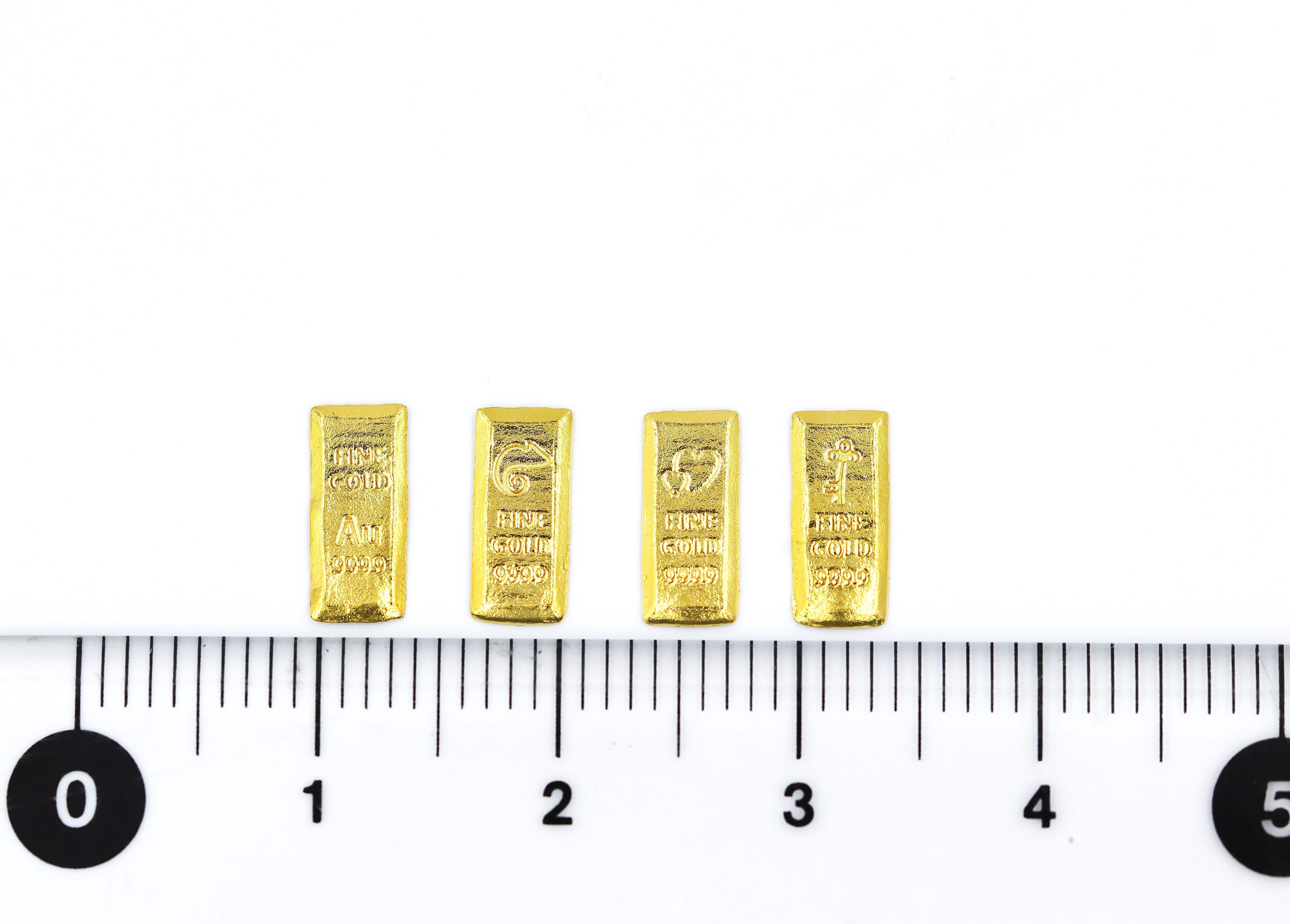 指先にちょこんと乗る、精巧なミニチュアサイズ。小さく持てる、インゴット型!
