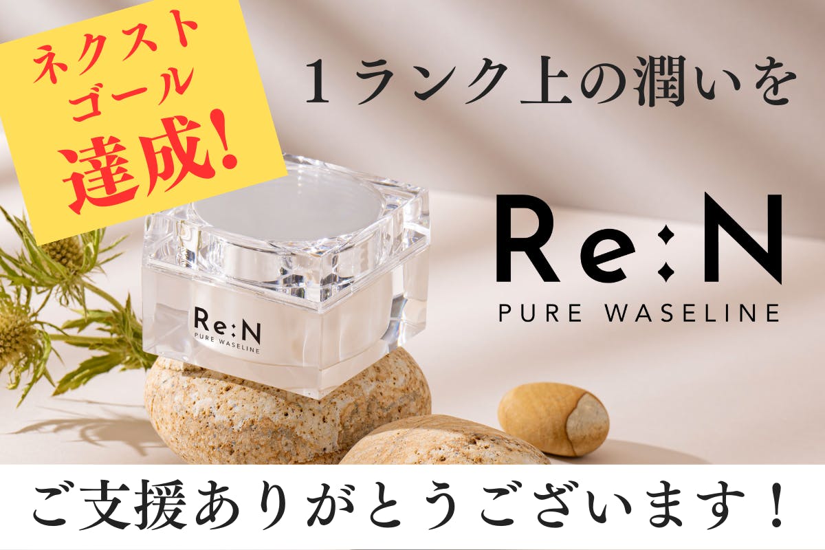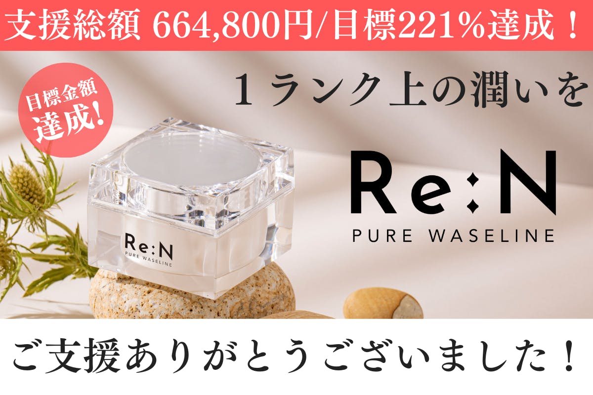 その間、もっと多くの方にRe:Nのピュアワセリンをお届けしたいという想いでネクストゴール(目標金額:60万円)を設定させていただきました!
