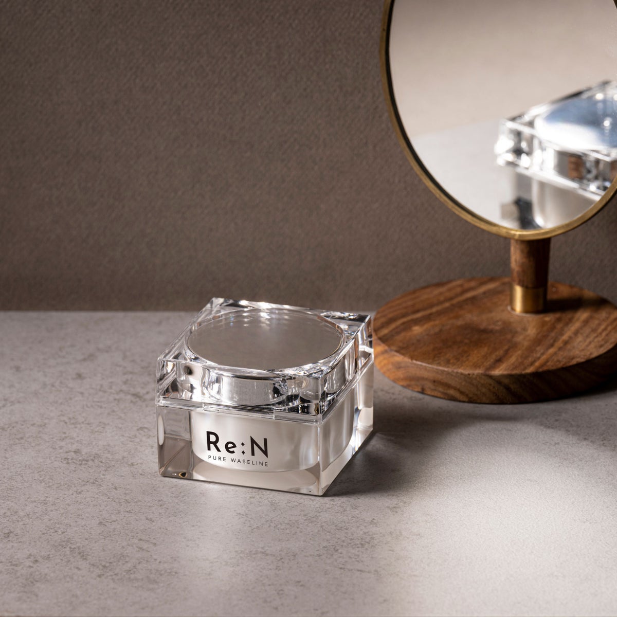- Re:Nのピュアワセリンには、洗練されたクリアのスパチュラが付属されています。