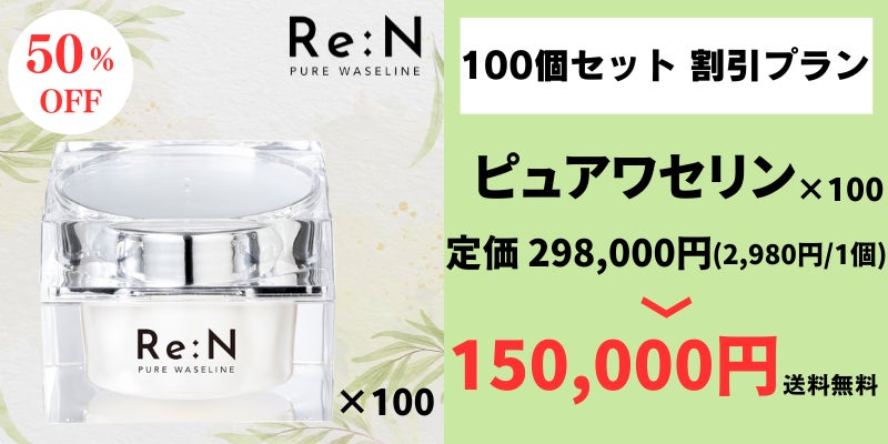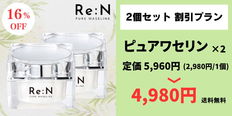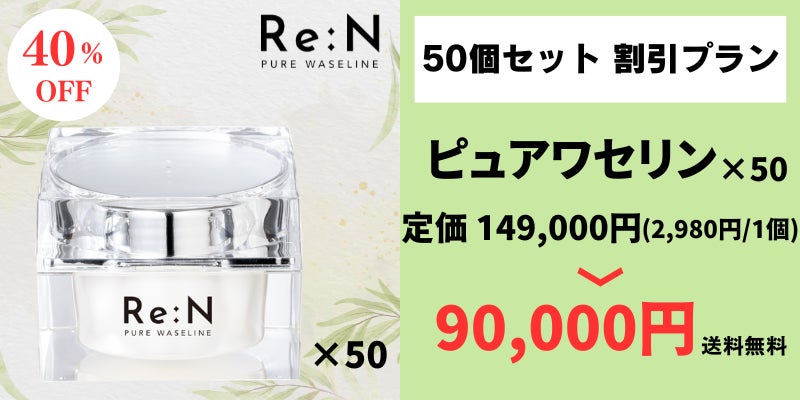 - Re:Nのピュアワセリンは、高純度なワセリンを100%使用しています。