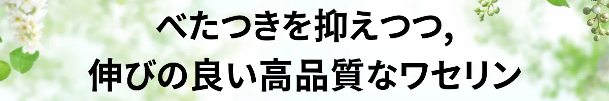 - 市販のワセリンのべたつきや独特の匂いは、その純度や製法が影響しています。