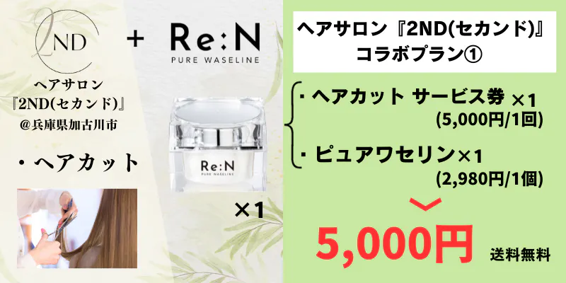 ・ヘアサロン『2ND(セカンド)』ヘアカットサービス券 ×1回 + ピュアワセリン ×1個 5,000円(送料無料)
