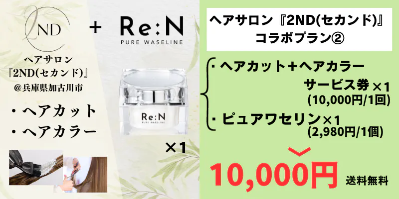 ・ヘアサロン『2ND(セカンド)』ヘアカット+ヘアカラー サービス券 ×1回 + ピュアワセリン ×1個 10,000円(送料無料)