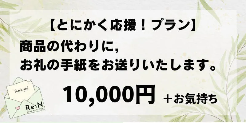 ・HP・LPにお名前を記載させていただきます。+ 感謝の気持ちを込めてお礼状をお送りします。30,000円(送料無料)