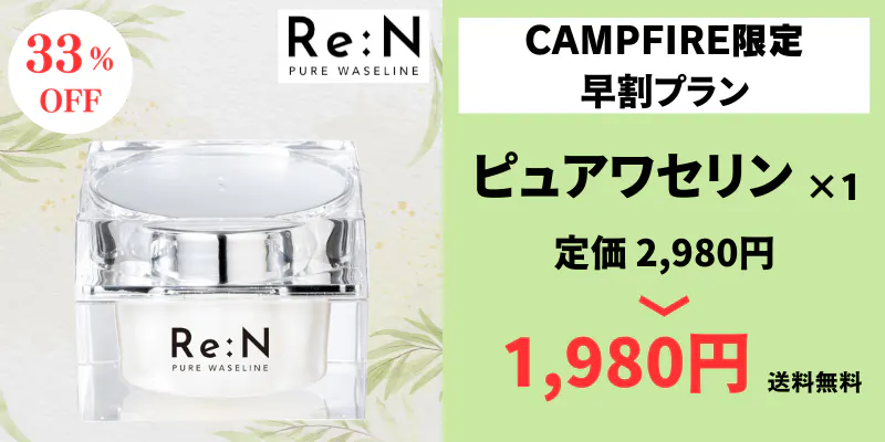 その間、もっと多くの方にRe:Nのピュアワセリンをお届けしたいという想いでネクストゴール(目標金額:60万円)を設定させていただきました!