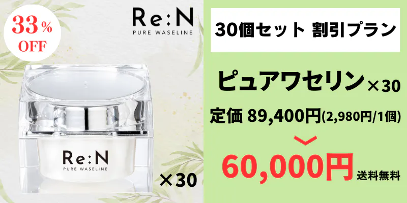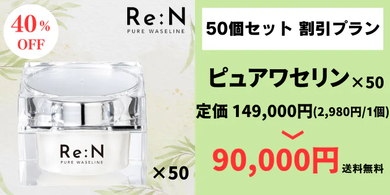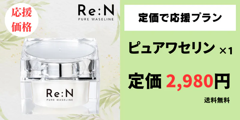 - Re:Nのピュアワセリンは、高純度なワセリンを100%使用しています。