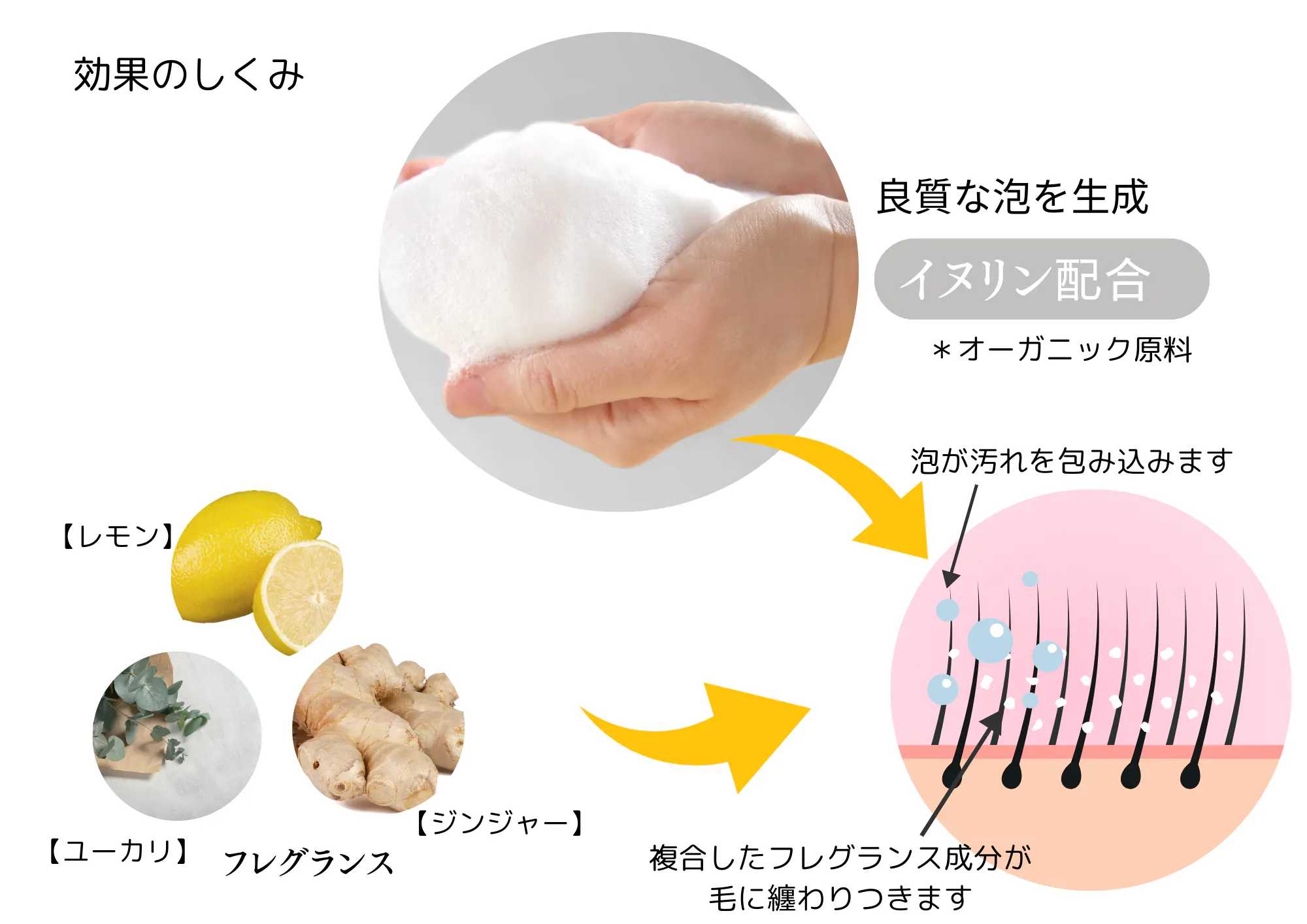 良質な泡が皮膚の奥まで行き届き、効果的に汚れを取り除きます。