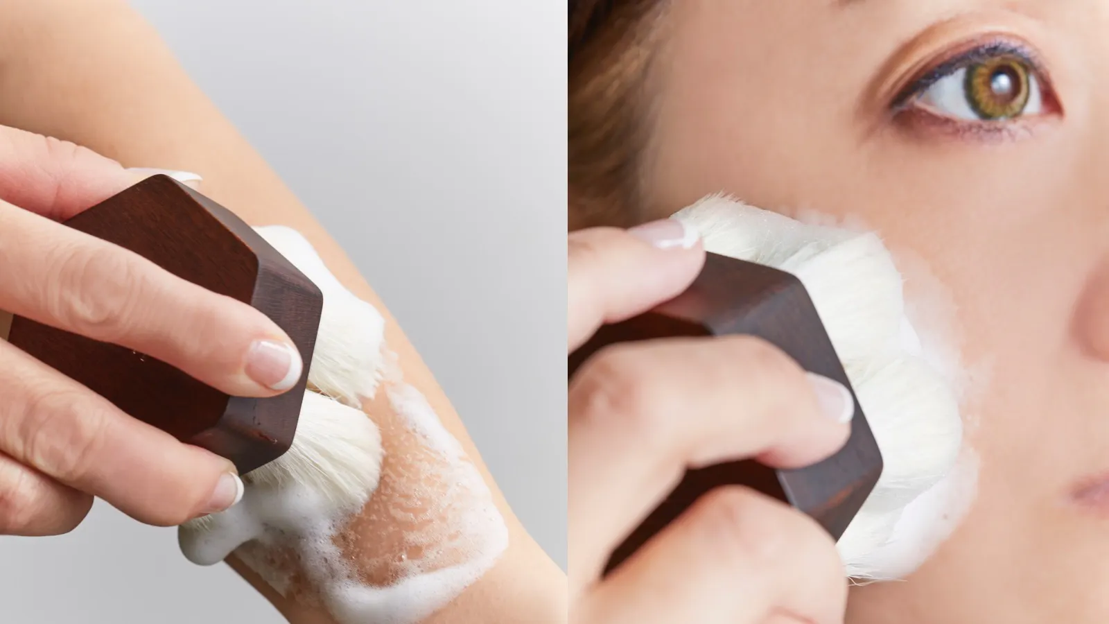 メイクブラシによく使用される毛素材をそのままボディブラシに!泡立ちが良く濃密泡で、こすらず摩擦レス!