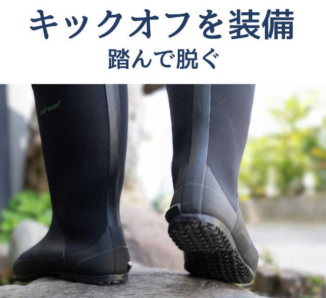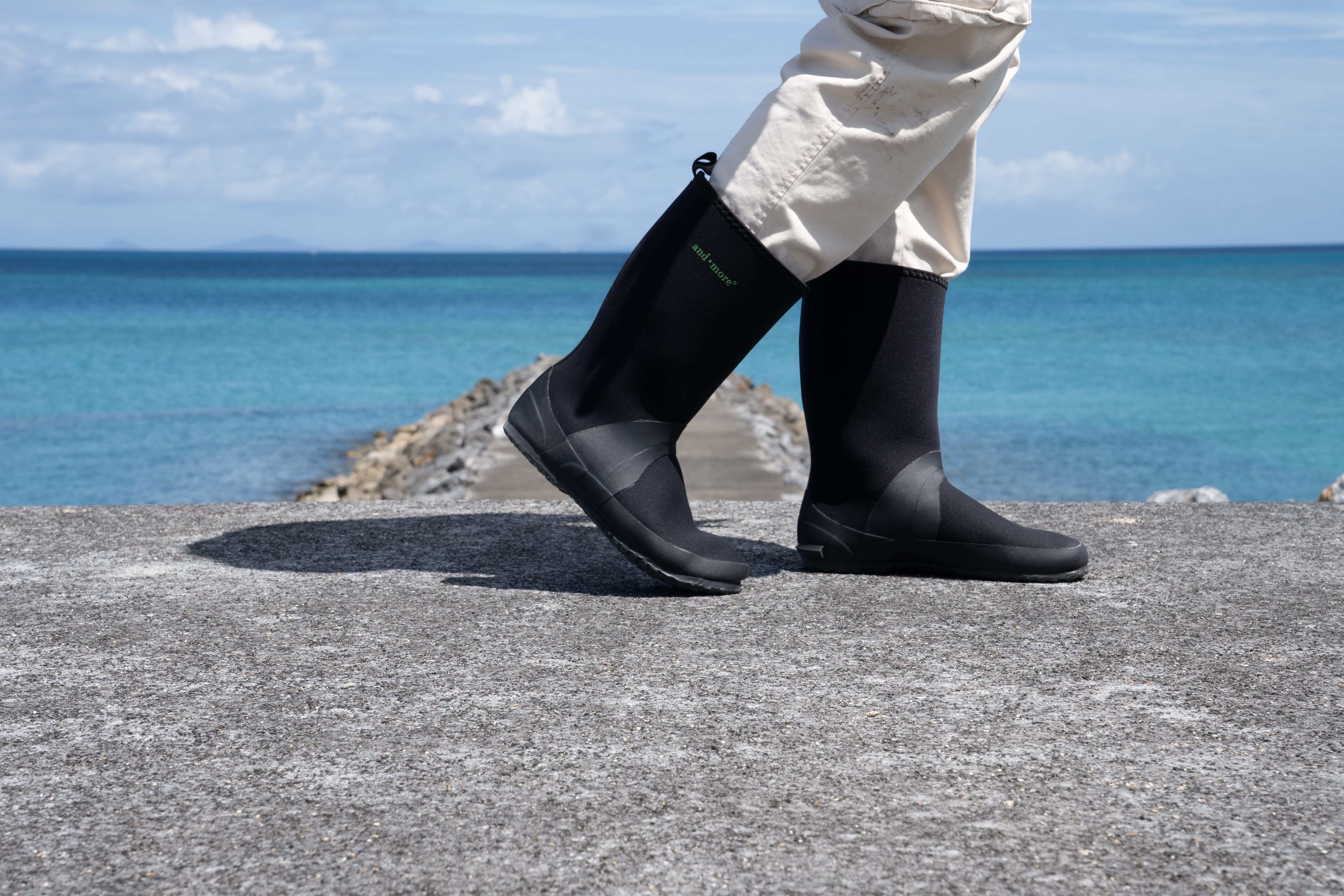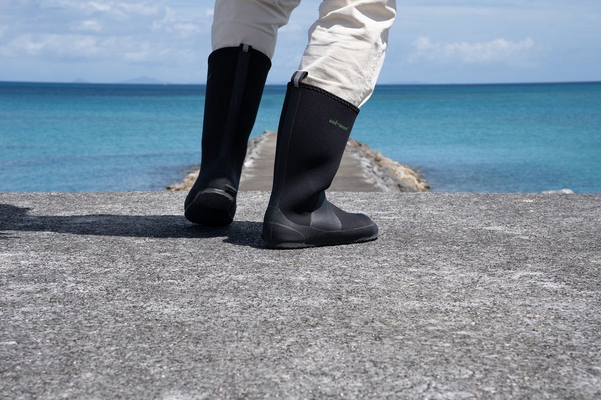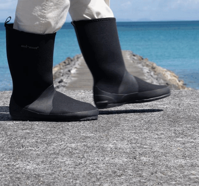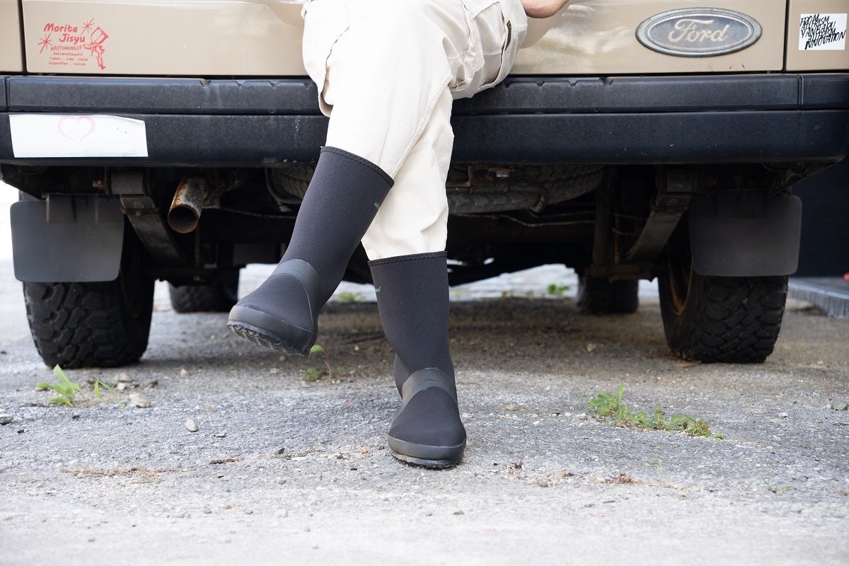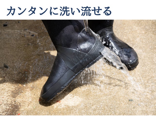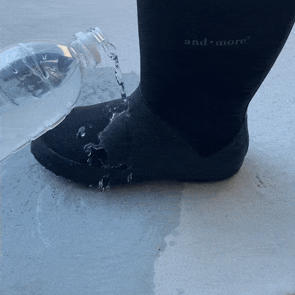 たった4mmのダイビングスーツ素材が、悪天候や悪路でも足元を快適に! 驚きの防水を実現します。