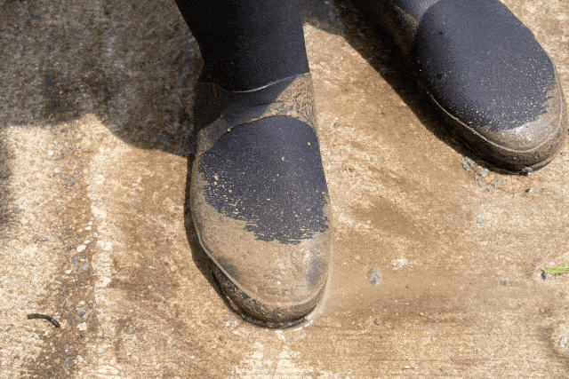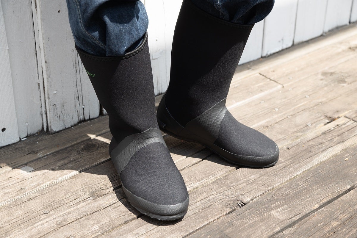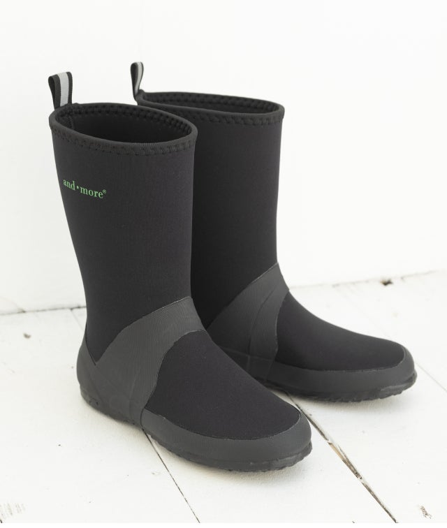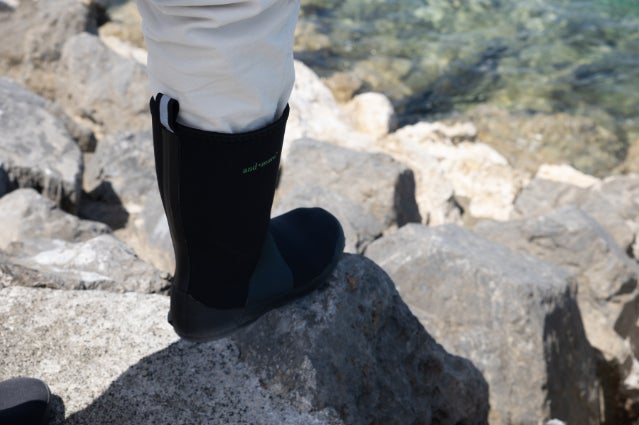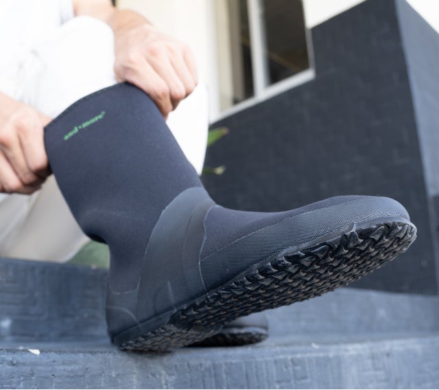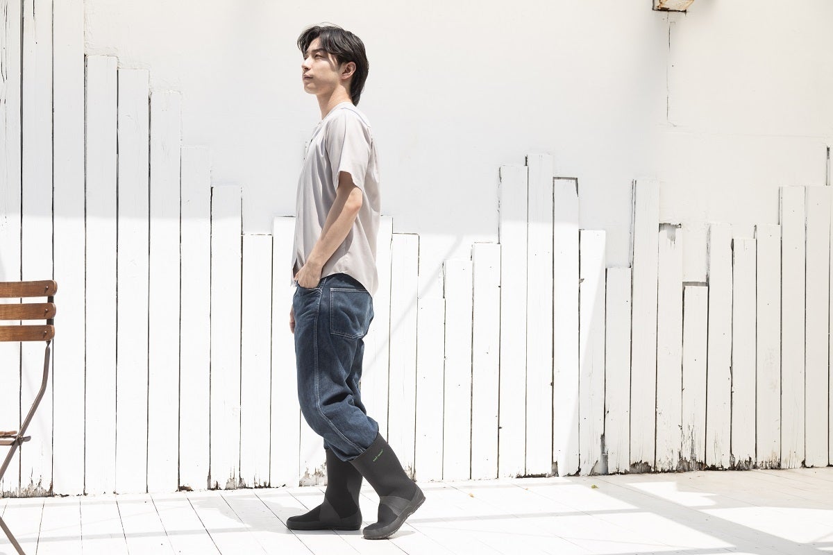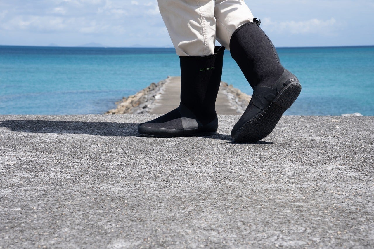 たった4mmのダイビングスーツ素材が、悪天候や悪路でも足元を快適に! 驚きの防水を実現します。