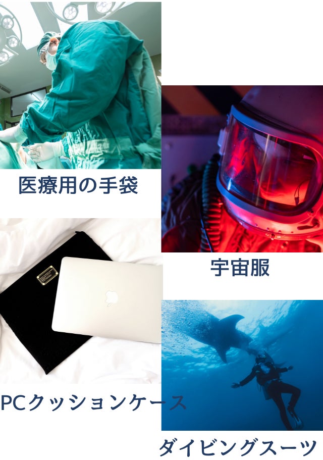柔軟性、伸縮性、防水性に優れているため、ウォータースポーツや医療分野などで使用されています。