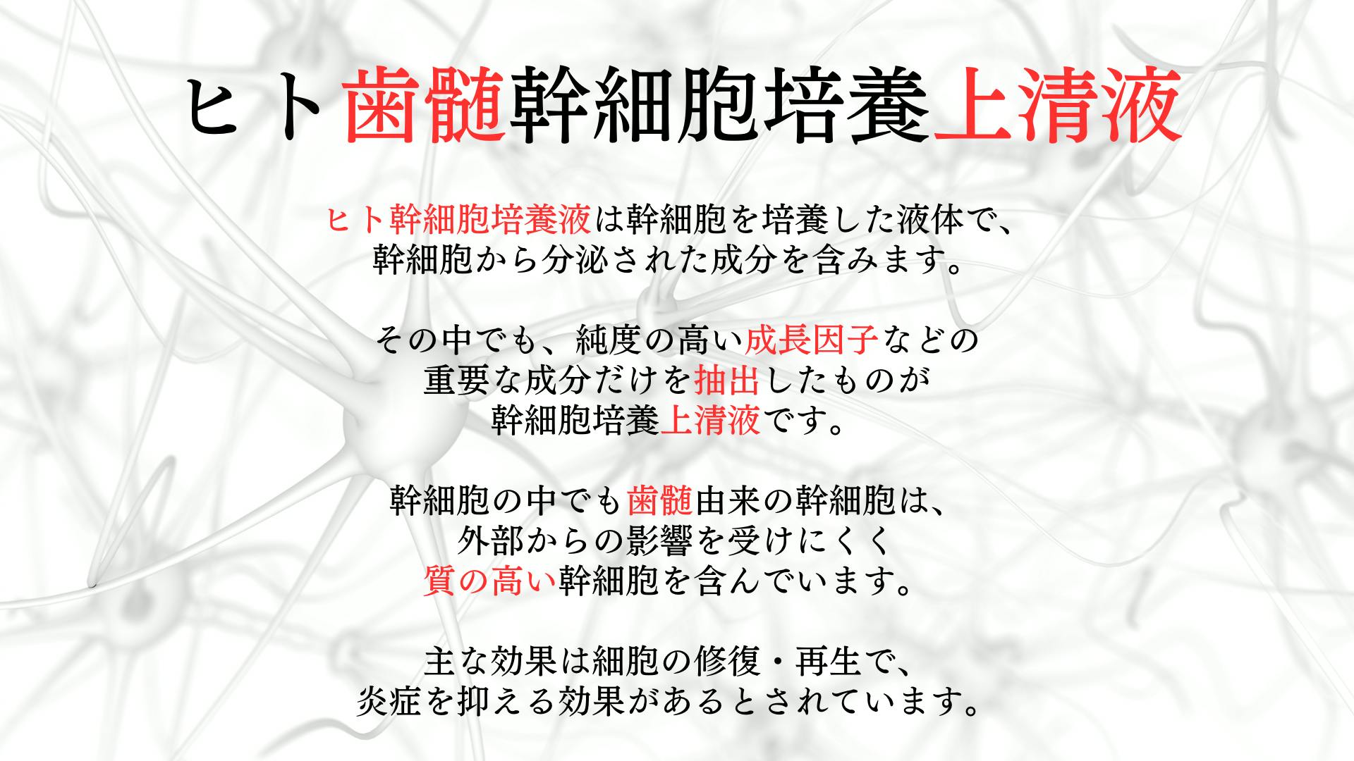 再生医療などでも使用されるヒト歯髄幹細胞培養上清液100%配合