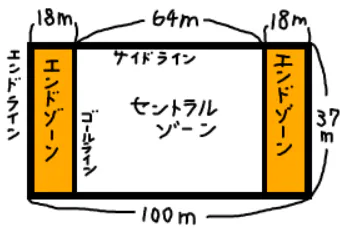 下の図のエンドゾーン内でキャッチすると得点となります。