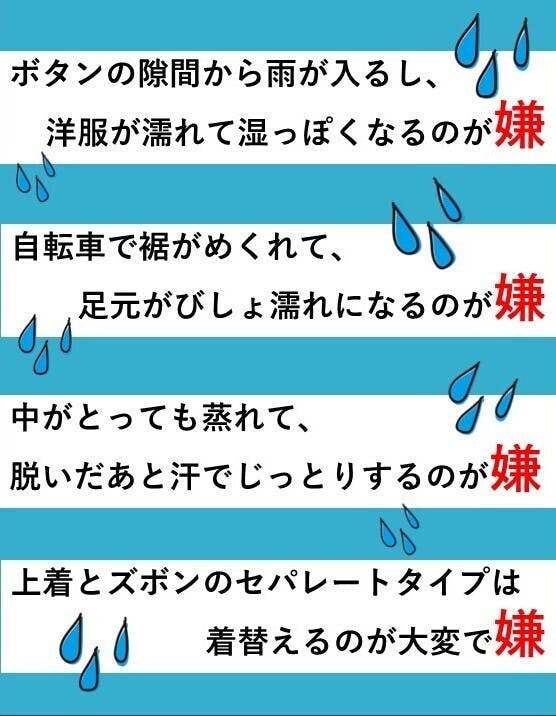 今回の商品を雨の日に着用いただけましたら、商品の良さを必ず実感していただけます。