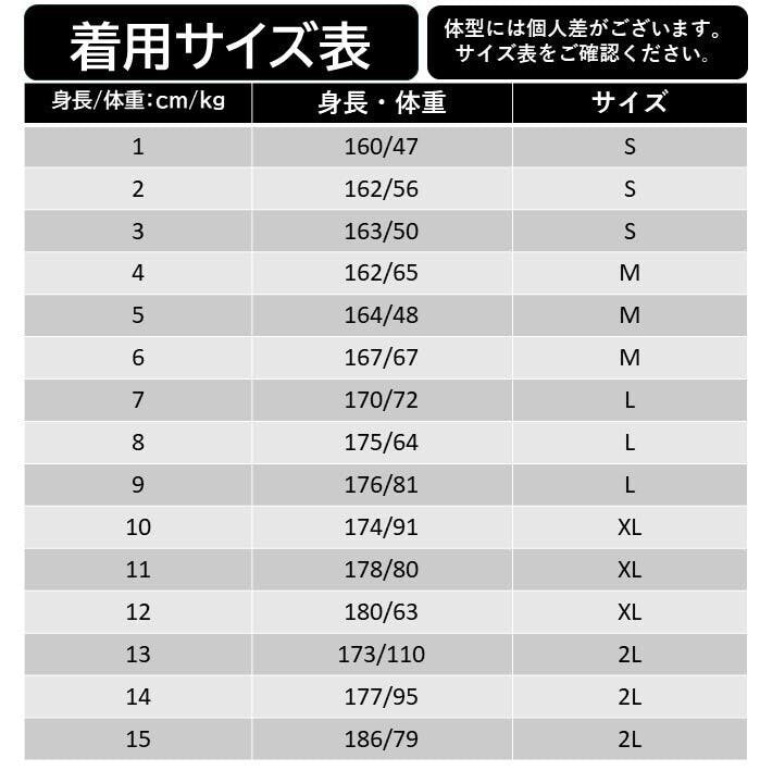 (着用サイズは以下のサイズ表を御覧ください)