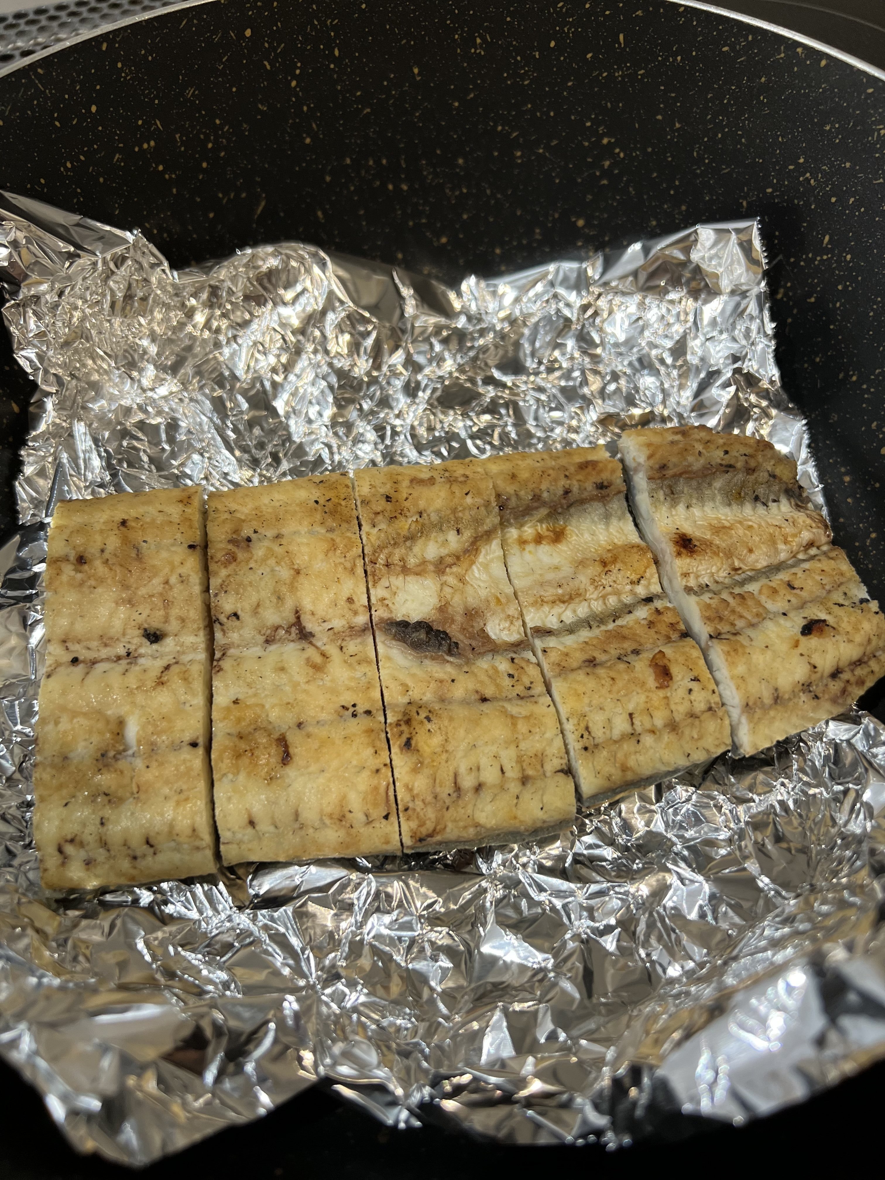 ★市販の鰻のタレで召し上がる場合は、①~③の工程後にアルミホイルを取り出し、フライパンにタレを入れて弱火で30秒程鰻にからめます。