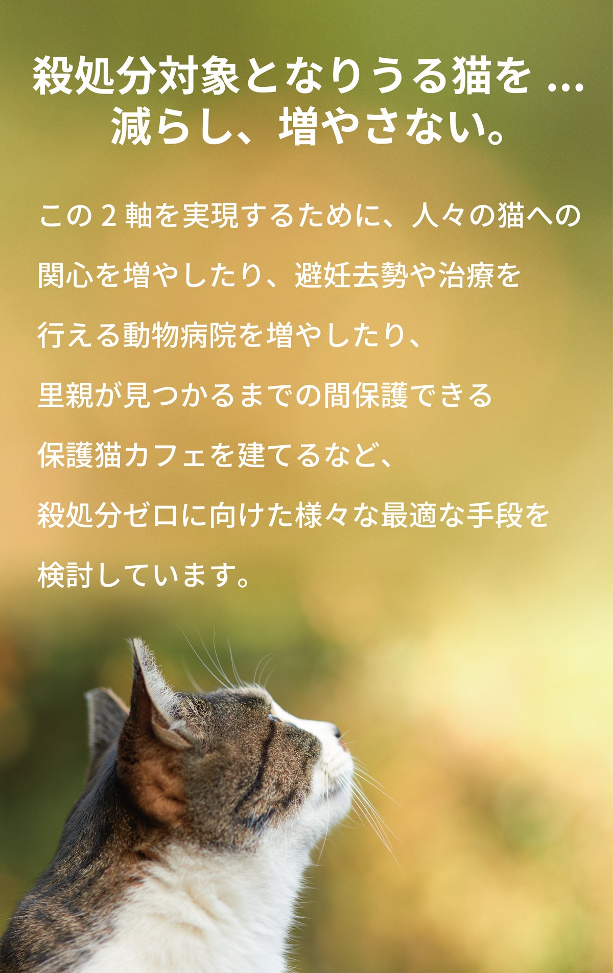 ゆくゆくは全国の動物病院や他の団体さんにて保護された猫たちとも連携し、全国展開を目指したいと考えています。