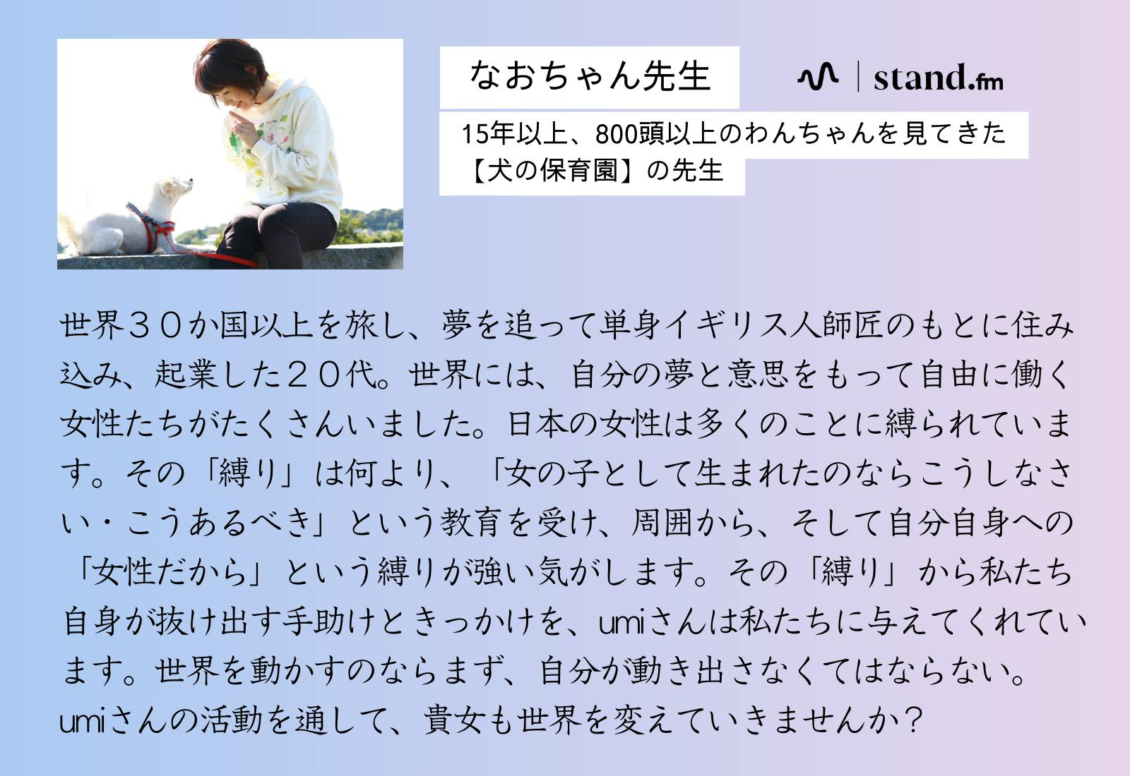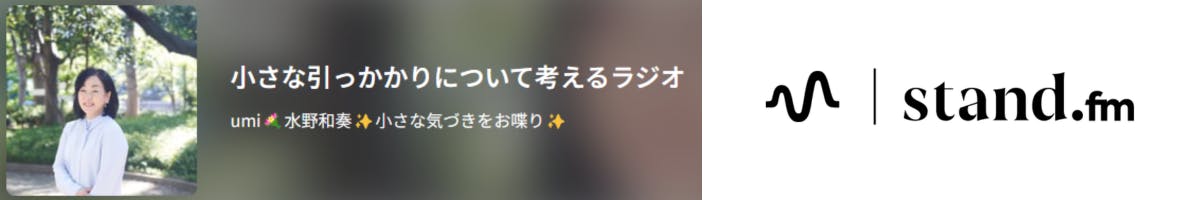 音声配信Stand.fmでは「小さな引っかかりについて考えるラジオ」という番組名で、女性の働き方に関する内容を交えながらお話しをしています。