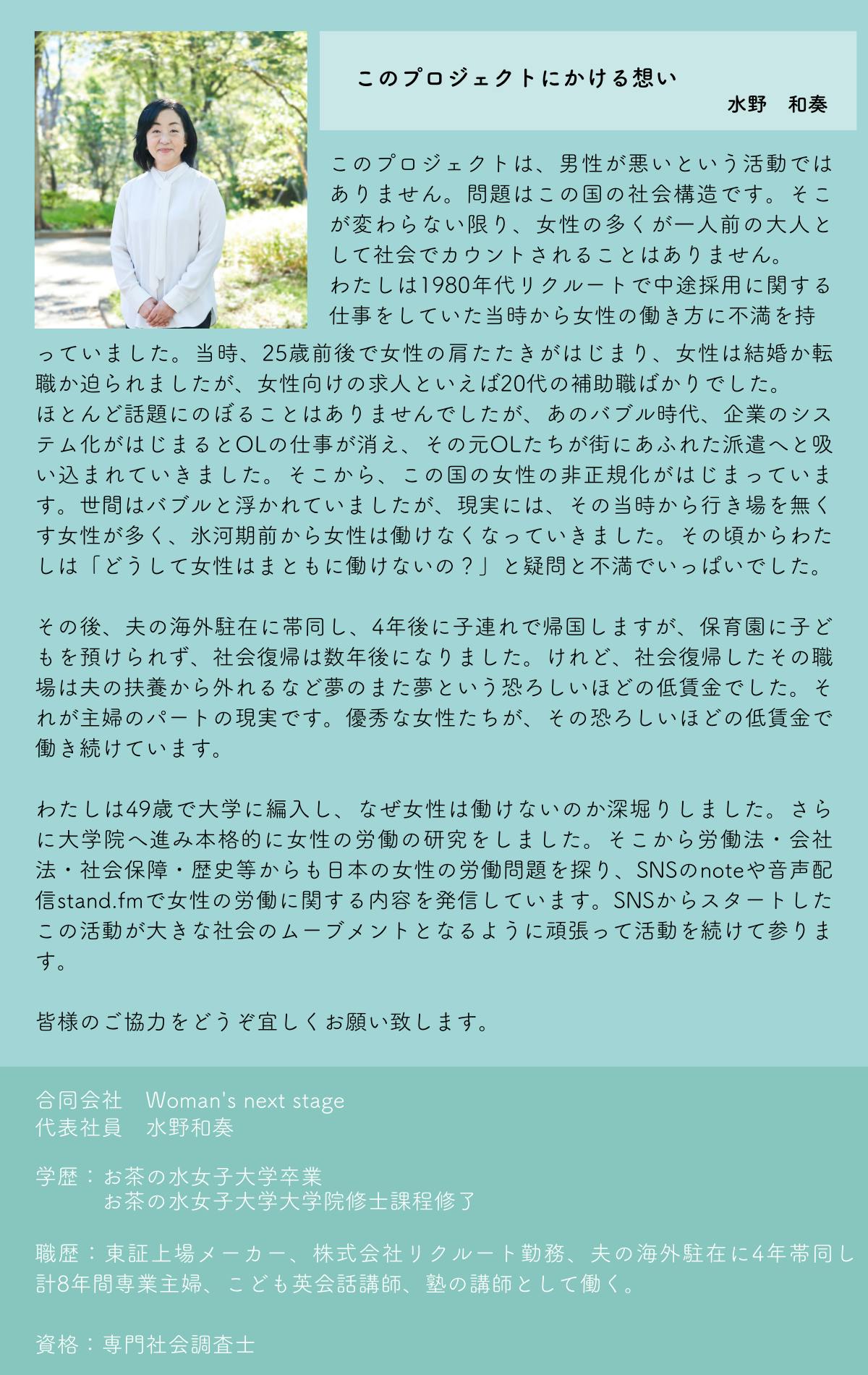 はじめまして。本プロジェクトを立ち上げました水野和奏と申します。