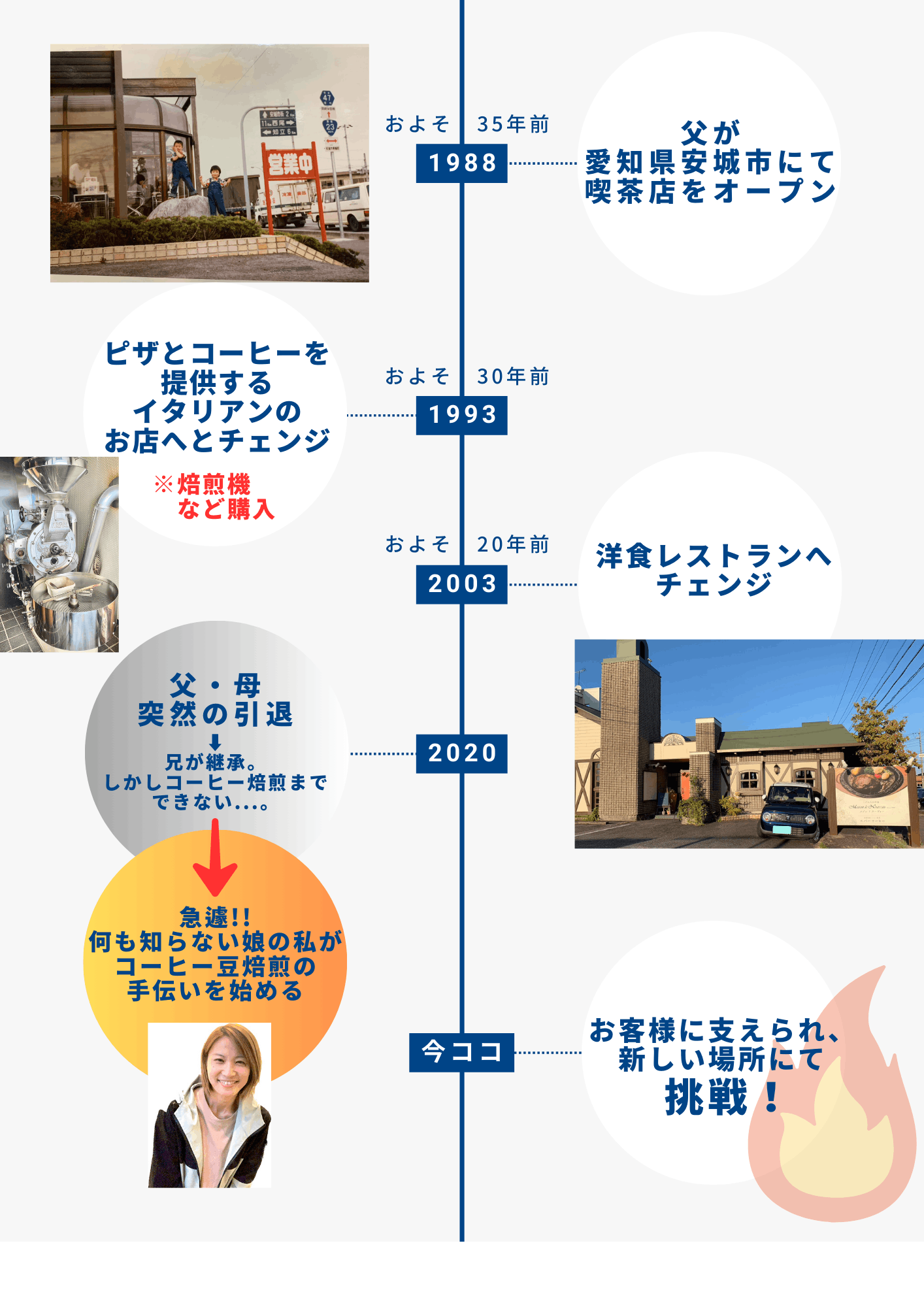 父が飲食店をはじめ、イタリアンのお店やり始めた頃にその敷地の一角にコーヒー焙煎所を作り、コーヒー豆を販売し、お店ではブレンドコーヒーを提供していました。