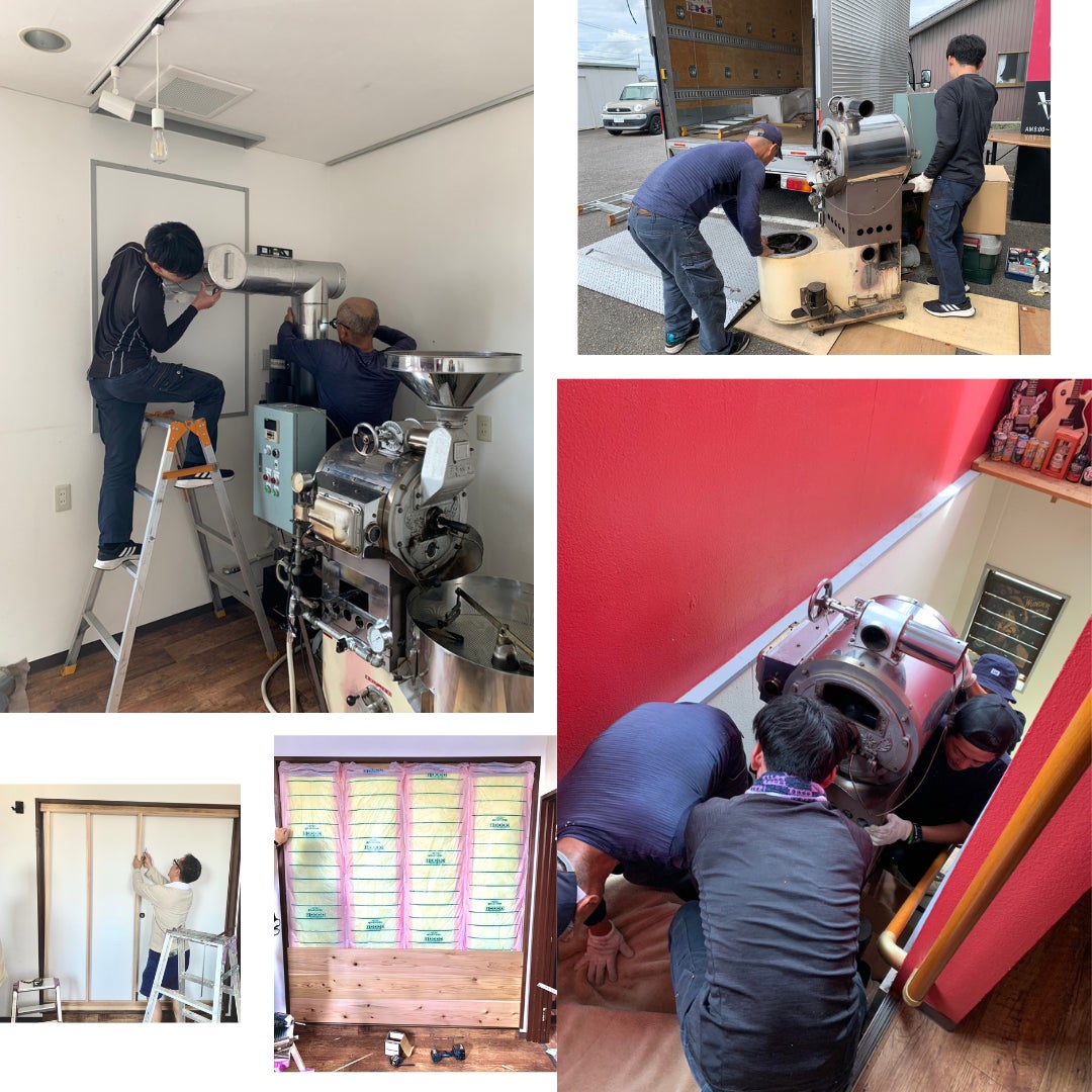 焙煎機の移設工事 はじめ、壁の防音工事、ダクトの工事など完了していっております!