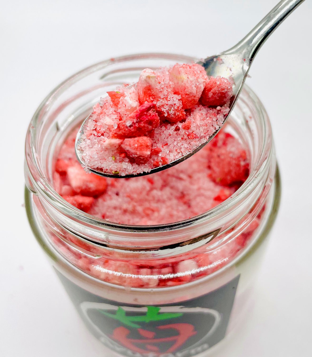 そして、相性の良い「グラニュー糖」と合わせることで、あまおうの酸味と甘みを存分に活かした新商品【あまおうの砂】が誕生しました!