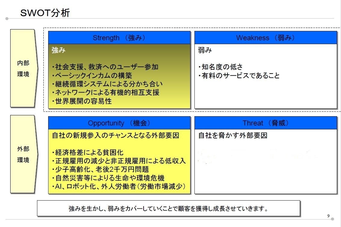 『現代の経済社会システムが万が一非常事態となったとき、その時でも機能し人々の日常生活に寄与することが出来ることで安心を獲得します。』