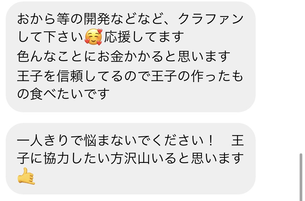 クラウドファンディングをするべきか非常に悩んではいましたが、あるフォロワーさんから「クラウドファンディングをしてください」とメッセージが届いた事で、決心がつきました。