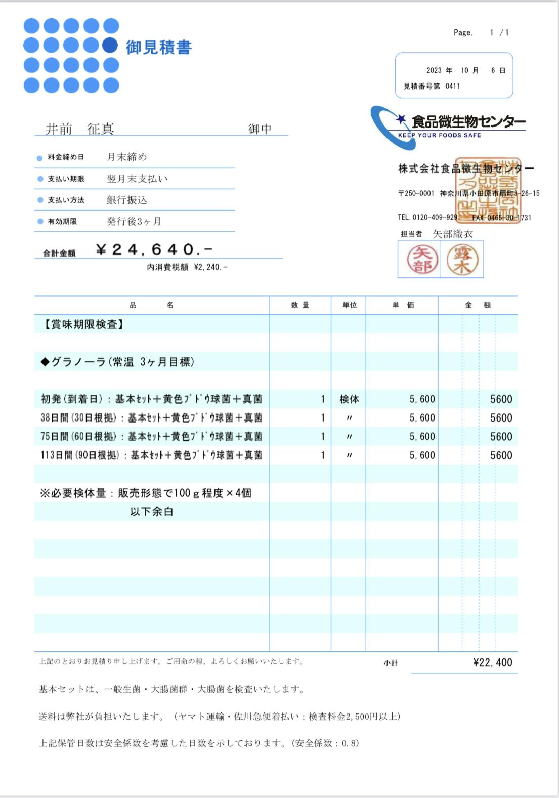先日、賞味期限を調べるため、検査機関にグラノーラを提出致しました!