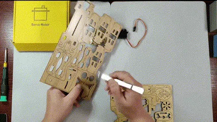 天然木のパーツを組み立てる