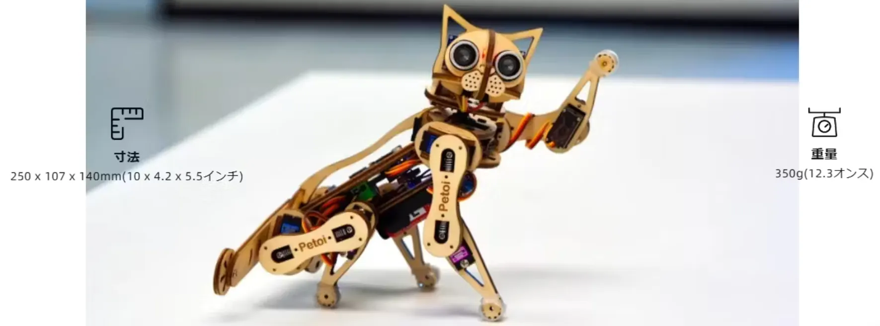 AIロボットやただ動いて歩くだけのおもちゃは世の中にたくさんありますが、本物そっくりのリアルな動きにしっかりとした形で人々を魅了し、かつ風合い豊かな天然木でできているので、どこに飾っておいても周囲の雰囲気をアップさせるロボットは私も初めて見ました。素材も作りもしっかりしていますし、使い勝手の良い猫ロボです。そんなPetoiオリジナル猫ロボ【Nybble】(ナイブル又はニブルと呼びます)を、少しでも多くの方にお届けしたいと思っております。