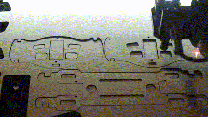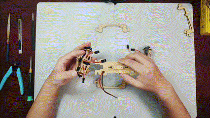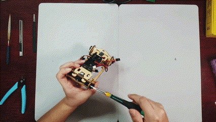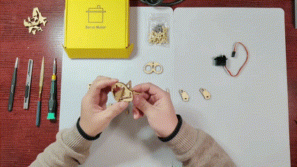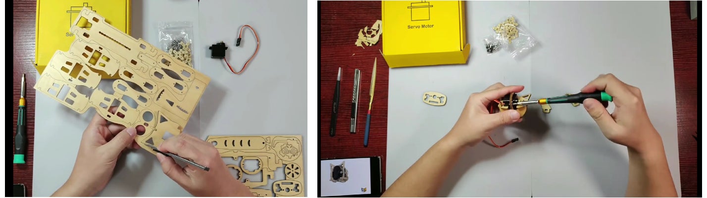天然木のパーツを組み立てる