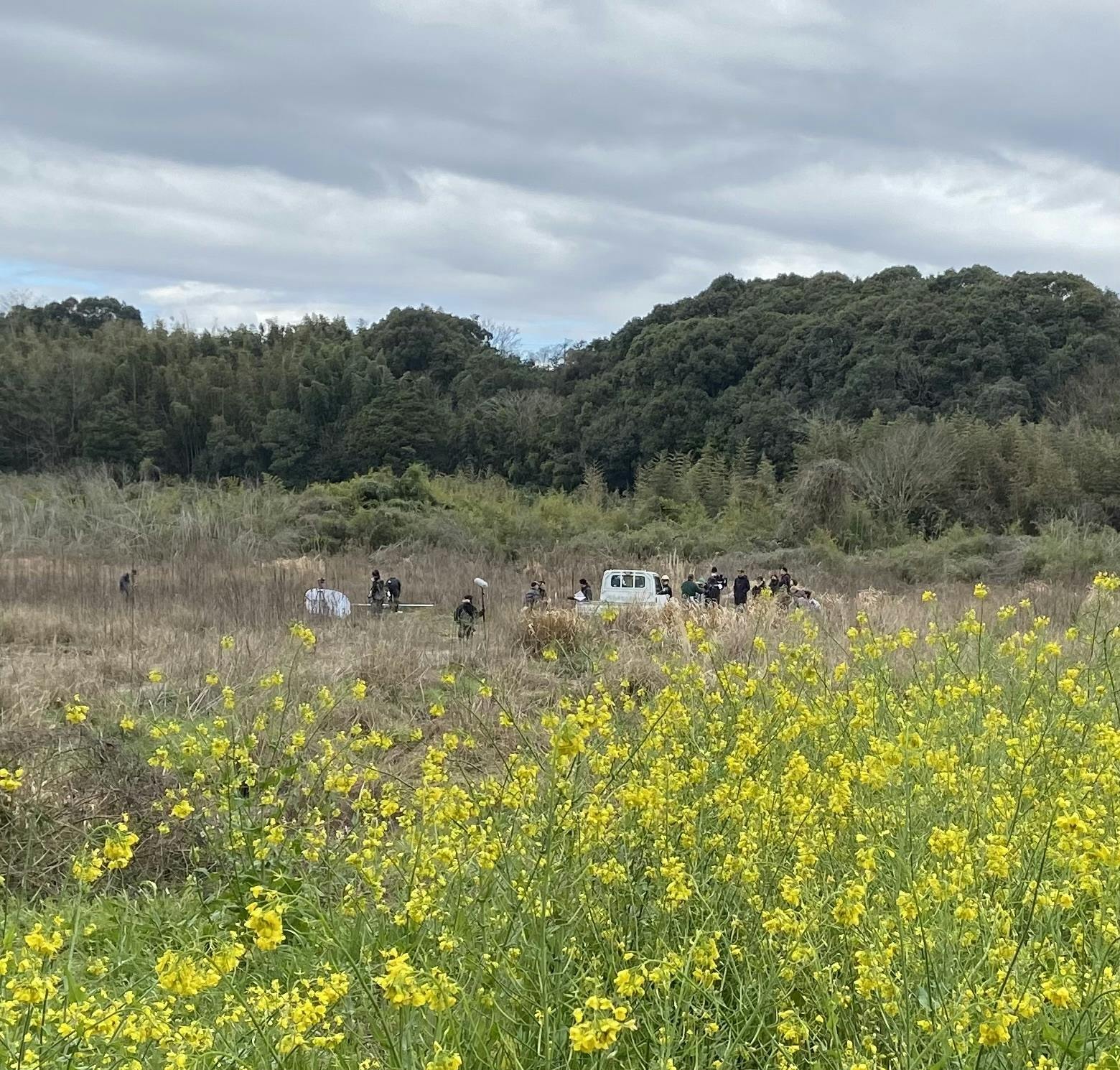 2024/03/10 21:00【冬ロケを終えて】 映画「囁きの河」、半月に渡る1回目の撮影が終わりました。空も川も生き物です。毎日違います。川霧や川の流れ、雲の流れに撮影が中断することもありました。 ドローン撮影では撮影スタッフが近くにいないため、地元の人が俳優さんに気さくに話しかけてくる場面もありました。球磨村、相良村、人吉市での撮影には30名以上のエキストラさんが協力してくださり、キャストさんたちの燻銀のような演技に魅せられました。 撮影が予定通りにいかないことも当たり前だと思えるようになった頃、撮影現場に咲く草花が語りかけてくるようでした。 住む人がいなくなった住居跡には何事もなかったかのようにボケも水仙も長閑に開花しています。秋には柿が実るでしょう。耕作出来なくなった河川敷の荒地には菜の花が見事です。 災害支援を繋いで来た人たちが連日地元だけでなく遠くからも応援見学に来てくださいました。ご縁を感じながらたくさん助けていただいたこと、寒風の中温もりを感じる瞬間でした。 夏場の撮影は6月中旬からです!山本 もっと見る