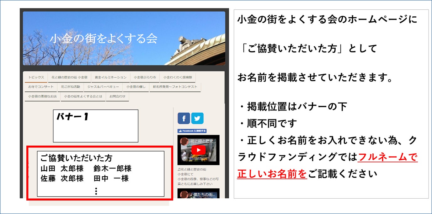 内容③小金の街をよくする会のホームページへ協賛いただいた方のお名前を掲示いたします。