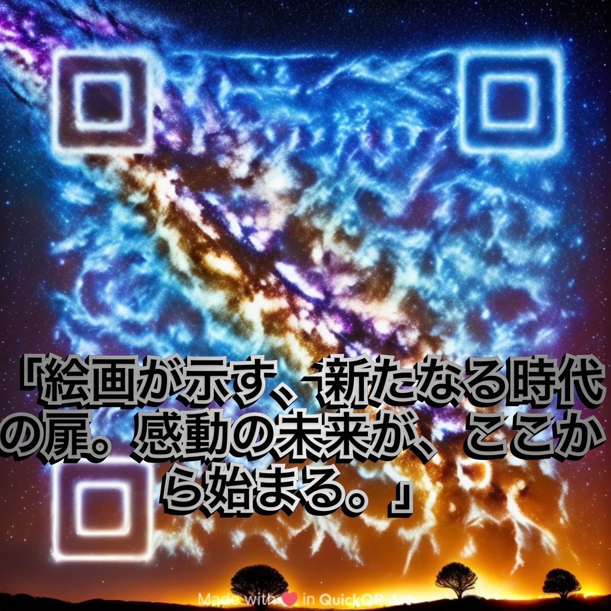新時代を作りたい!今話題の生成AIをくたったQRコードアート、絵画です。インテリア、日頃の感謝を伝えるプレゼント、記念日、お誕生日、お祝いなど、多くの用途で活用できると思っています。 一生形として残り多くの人の心に残るような作品を作りたいと思います! QRコードを読み取ると、お客様が選ばれた動画が流れます。 みなさんが満足していただけるような最高の作品を作り、ご提供させていただきたいです!将来的には、QRコードアートを読み取ると、動画が流れる専門のウェブサイトを作りもっと簡単に動画が出てくるようにしたいと考えています。また、自分の誕生日を設定していただき自分の誕生日の日に動画が届くなどの機能も考えています。ウェブサイトを作ることで、先にQRコードアートのモデルを作ることができるので販売する時のコストを下げることができると思っています。