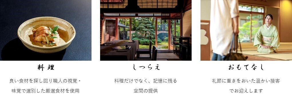 【料理・しつらえ・おもてなし】の3点を、他店様よりもこだわっているという自負がございます。