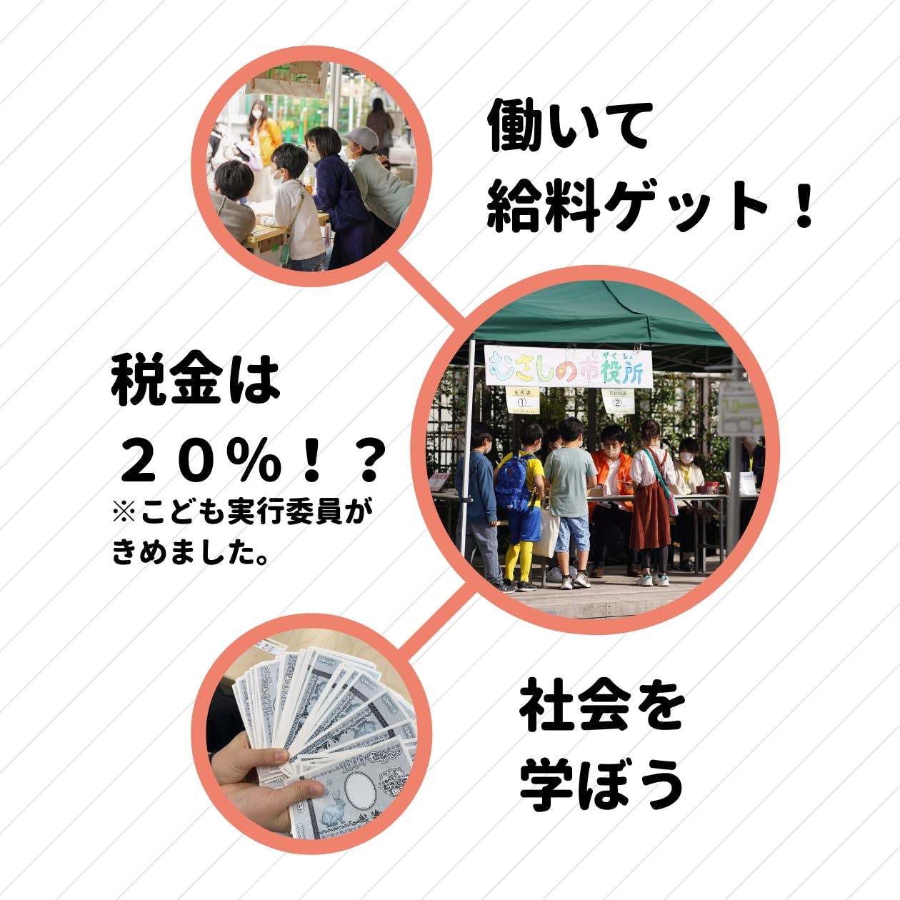 特徴2:小学生の実行委員が企画・準備し、まちのアレコレを決めています