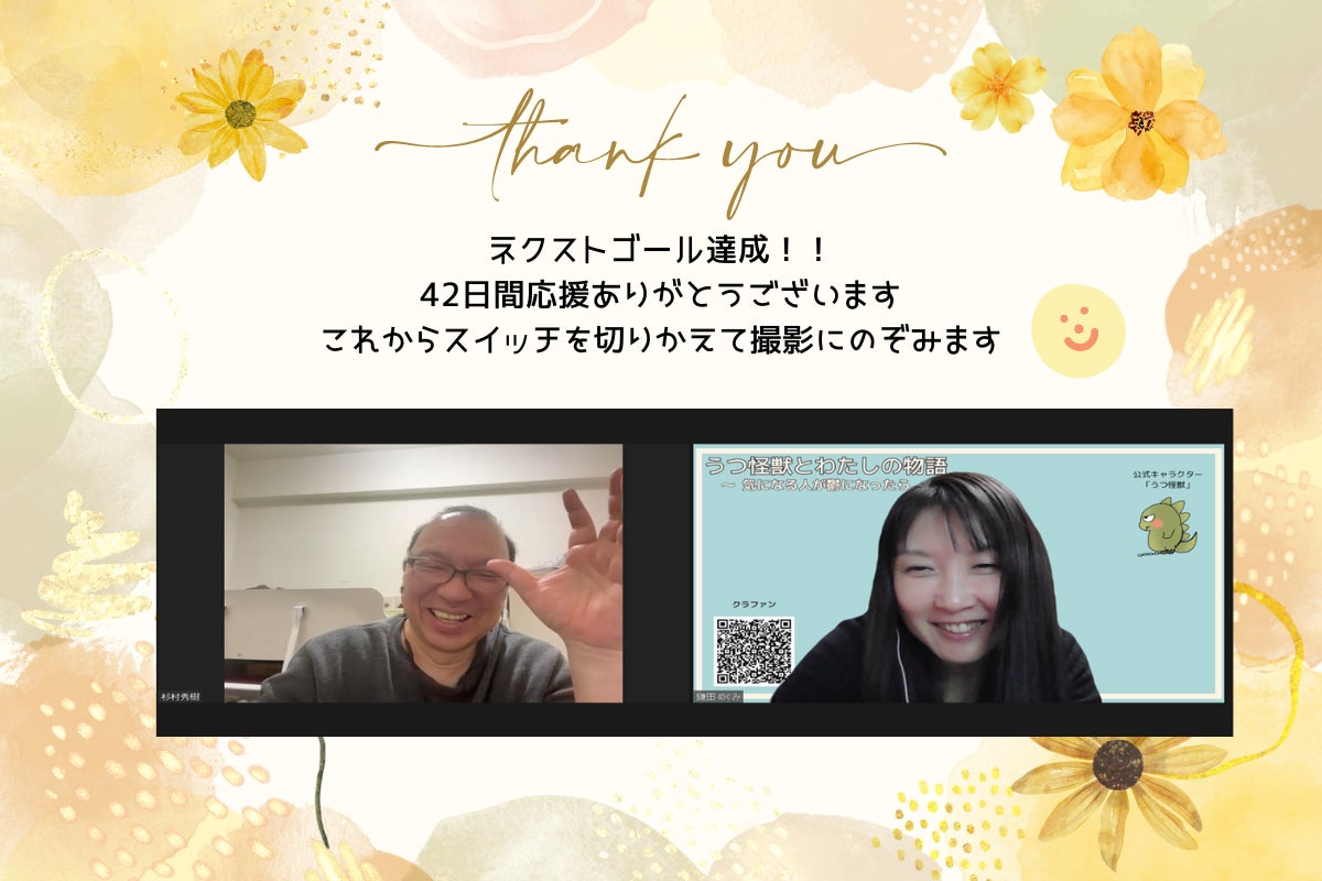 ファースト目標達成しました!!ありがとうございます!目標達成を記念しましてBIGなご報告Vol.2クラファンのリターン品でもあります初上映会にGOOD NEWSです!【2024年9月28日初上映会】アーティストmagcafe at gardenによる主題歌&挿入歌生歌に加えて、”なんと”!!本映画 真人(恵奈の夫)の友人佐藤役 葛山陽平さんアーティスのTsutomuさんのご出演が決定いたしました!!主題歌&挿入歌2曲のリアルお披露目になります!この3曲は映画「うつ怪獣とわたしの物語」のために作成された特別な曲です。私はとても気に入っています!!みなさん、遊びに来てくださいね!◇上映場所:Musashino Valley 東京都三鷹市上連雀1丁目12−17 三鷹ビジネスパーク 地下1階JR三鷹駅より徒歩7分程度会場までの交通費は支援者様のご負担となります。
