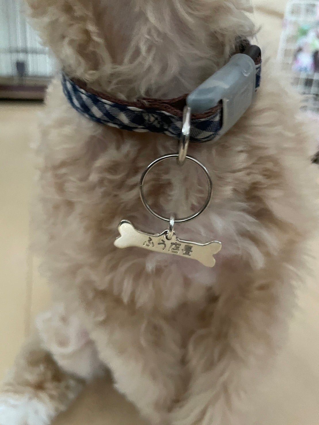当時は連絡先の電話番号を紙に書いて首輪に挟んでいたのですが、首輪を外さないと気付かないのと
