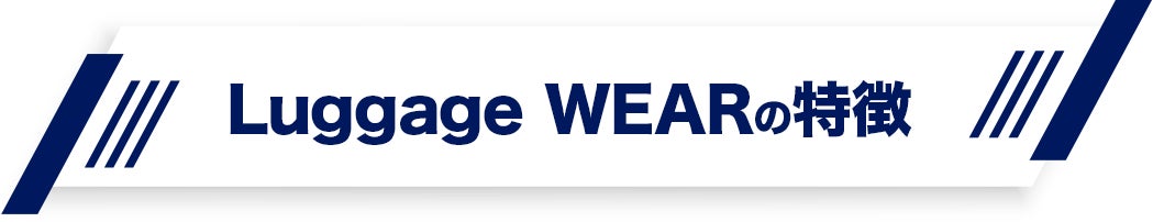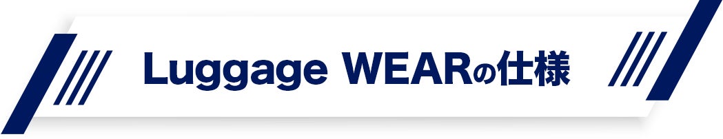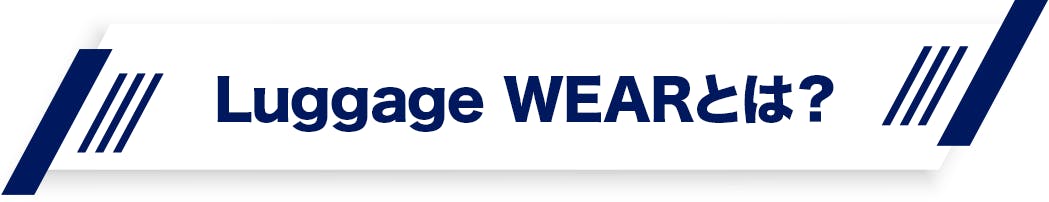Luggage WEARとは、「Luggage=荷物」と「WEAR=着用」という英語を組み合わせた造語です。直訳すると、荷物を着用する。という意味にはなりますが、我々の意図は、カバン並みの収納力を持った服を表しています。
