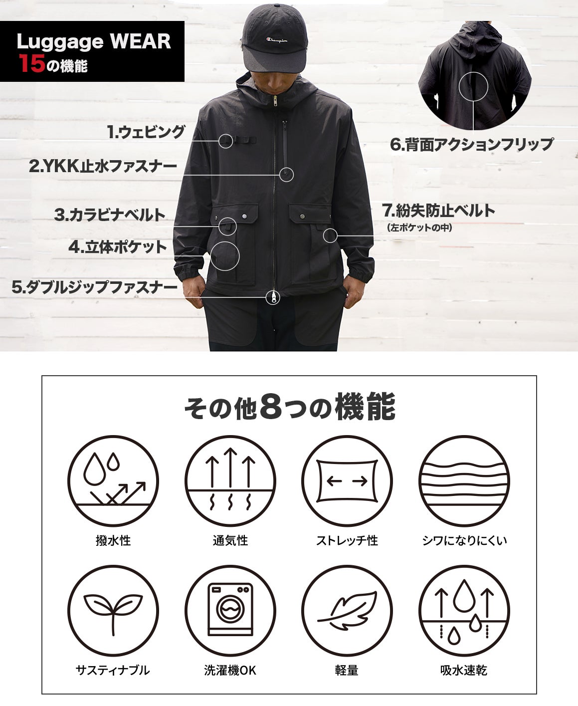 Sorge初のLuggage WEARは、手ぶらスタイルを快適にする15の機能と7つのポケットで、アウトドアやスポーツ、タウンユースまで活躍できるジャケットです。