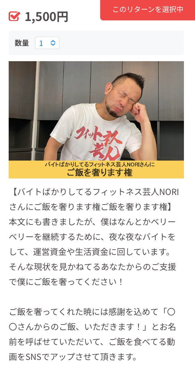 1回飯くらい奢ってあげるわって感じのリターンなのです。バイトの達人の僕から言わせると