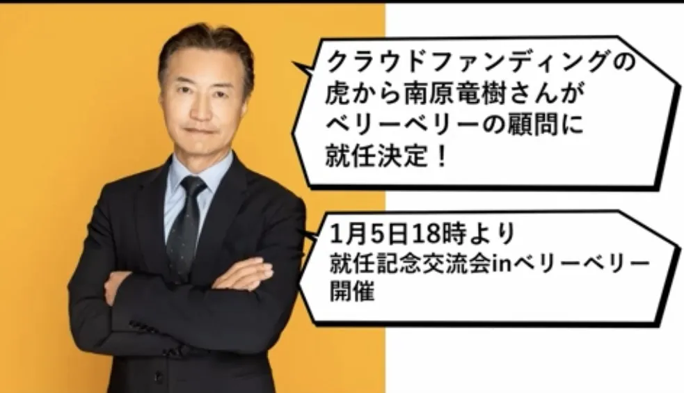 1月5日(金)18:00~ 南原竜樹さんベリーベリーの顧問就任記念交流会を開催します!