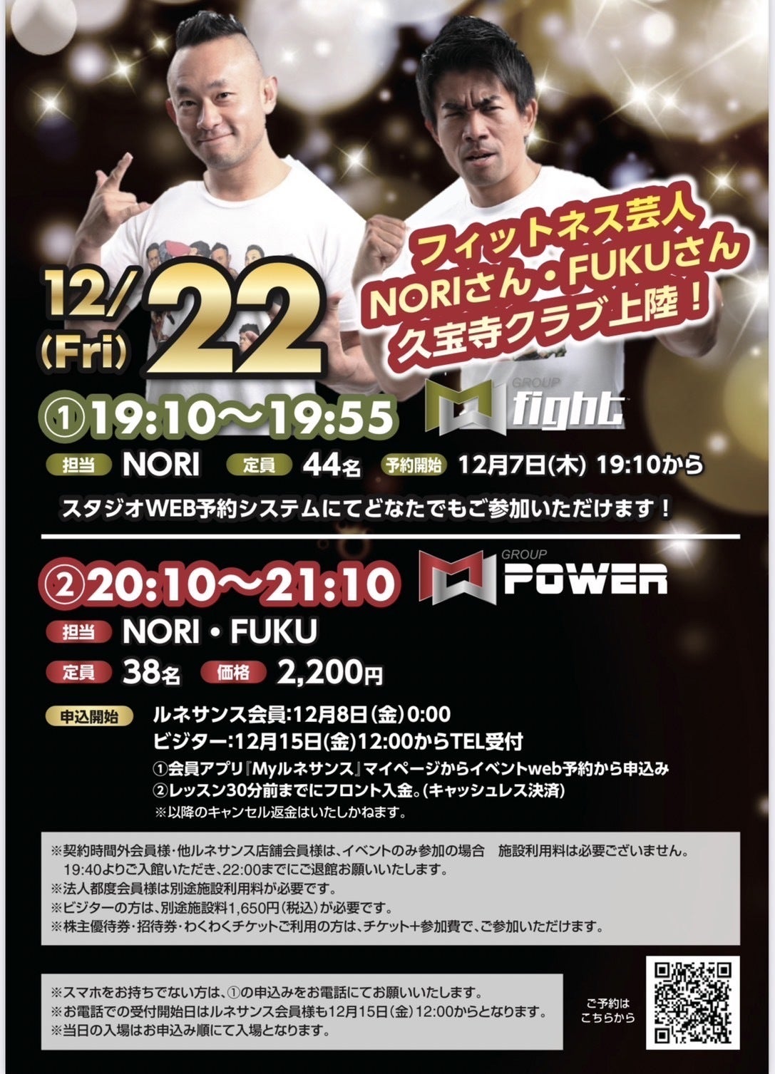ルネサンス久宝寺さんでイベントです!当日受付も可能という事なので大阪の皆さん、よろしくお願い致します。全力出しますのでレッスンが楽しかった時には、クリスマスプレゼントとしてクラウドファンディングのご支援頂けるととても嬉しいです。今日はそんな感じでバタバタになりそうです。よかったら活動はSNSに更新しますのでフォローもお願い致します。