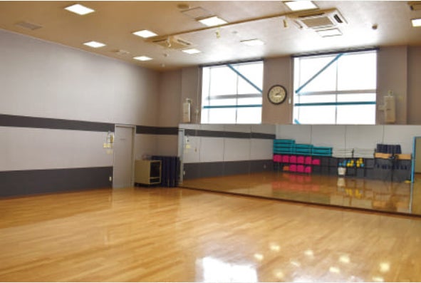 大きな窓のある明るいスタジオ。家族で楽しめるエクササイズやヨガや本格的な格闘技レッスンなど、様々なスタジオレッスンを行っています